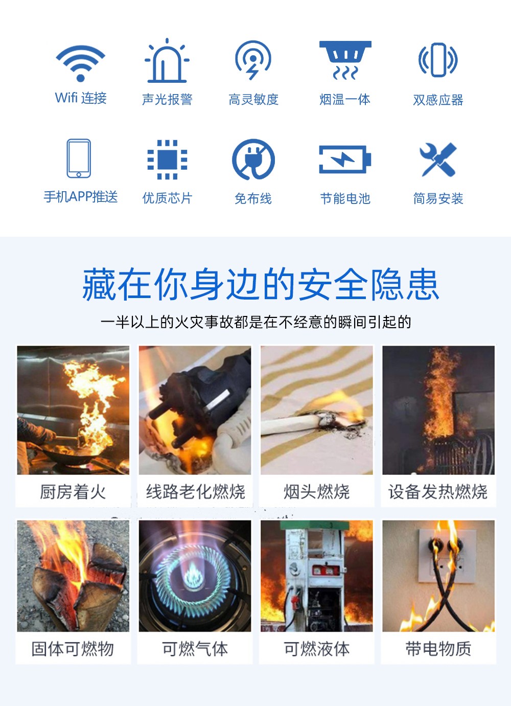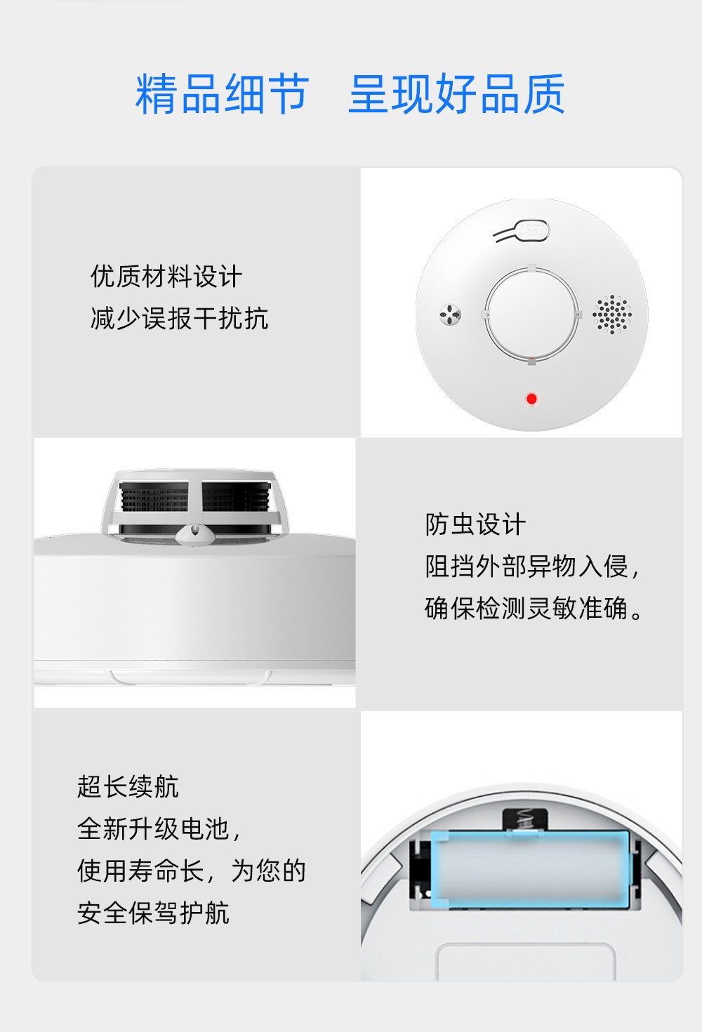 光電式感煙火災(zāi)探測(cè)報(bào)警器,采用特殊結(jié)構(gòu)設(shè)計(jì)的紅外光電傳感器、性能可靠的MCU,具有靈敏度高、穩(wěn)定可靠、 耗電小、美觀耐用、使用方便等特點(diǎn)。獨(dú)立款產(chǎn)品內(nèi)部具備光電傳感器,煙溫一體款產(chǎn)品的內(nèi)部具備光電煙霧傳感器和溫度傳感器,當(dāng)報(bào)警器觸發(fā)報(bào)警時(shí),會(huì)發(fā)出無(wú)線信號(hào)給報(bào)警主機(jī),